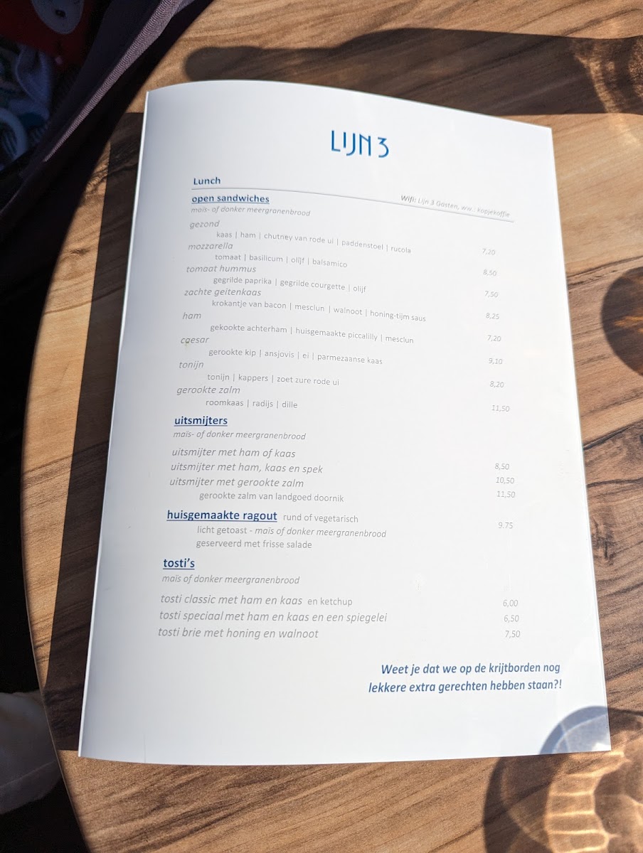 Lijn 3 - Lunch Drinks Dinner offers a diverse and enticing menu that caters to a variety of tastes and preferences. The restaurant’s offerings are well-rounded, with standout dishes such as the Saté, a flavorful chicken skewer served with peanut sauce, perfect for those craving a satisfying, savory bite. The Burger is another popular choice, crafted with a juicy patty and complemented by fresh toppings, offering a hearty meal for burger lovers. For seafood enthusiasts, the Zalm dish, featuring expertly cooked salmon, provides a light yet rich option, balancing taste and nutrition. Whether you're in the mood for a quick lunch, a leisurely drink, or a full dinner experience, Lijn 3’s menu guarantees something to please every palate. Each dish is thoughtfully prepared, making it clear that this restaurant is dedicated to providing delicious and comforting meals in a cozy atmosphere.